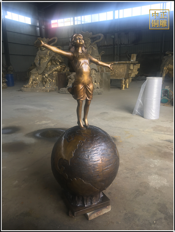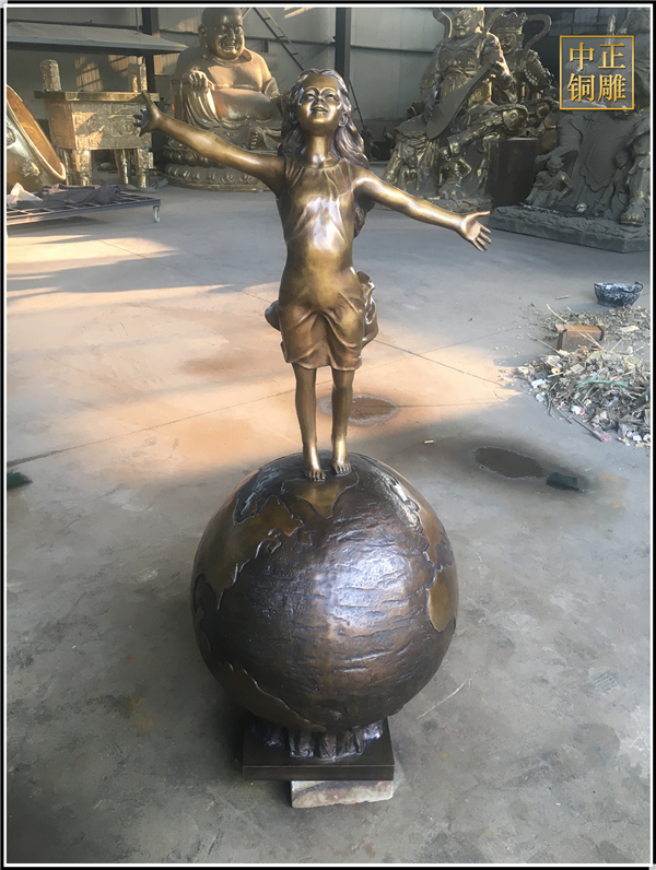 我公司生產的這件高1.5米的站在地球上的小女孩人物銅雕塑已發往江蘇省鹽城市,這件站在地球上的小女孩人物銅雕塑是以保護地球環境為主題設計制作的。