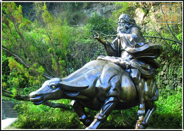 老子因騎牛西出函谷關,所以在古代人物雕塑中老子像造型多以騎牛老子像為主。老子的思想對中國古代哲學發(fā)展具有深刻影響,他的核心思想是樸素的辯證法。在政治上老子主張無為而治、不言之教。在權術上老子講究物極必反之理。在修身方面老子是道家性命雙修的始祖講究虛心實腹、不與人爭的修持理念。